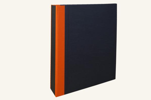 Orangefarbene Leinenkanten geben einen angenehmen Kontrast zum Schwarz und helfen darüber hinaus zur Differenzierung Ihrer abgehefteten Unterlagen. Besonders ansprechend wirken mehrere Ordner kombiniert mit weiteren Farben, die wir passend aufeinander abgestimmt haben.