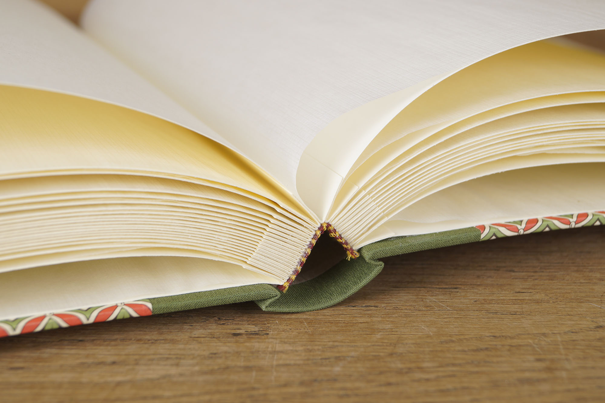Der solide Leinenrücken steht in geschmackvollem Kontrast zum Einband.