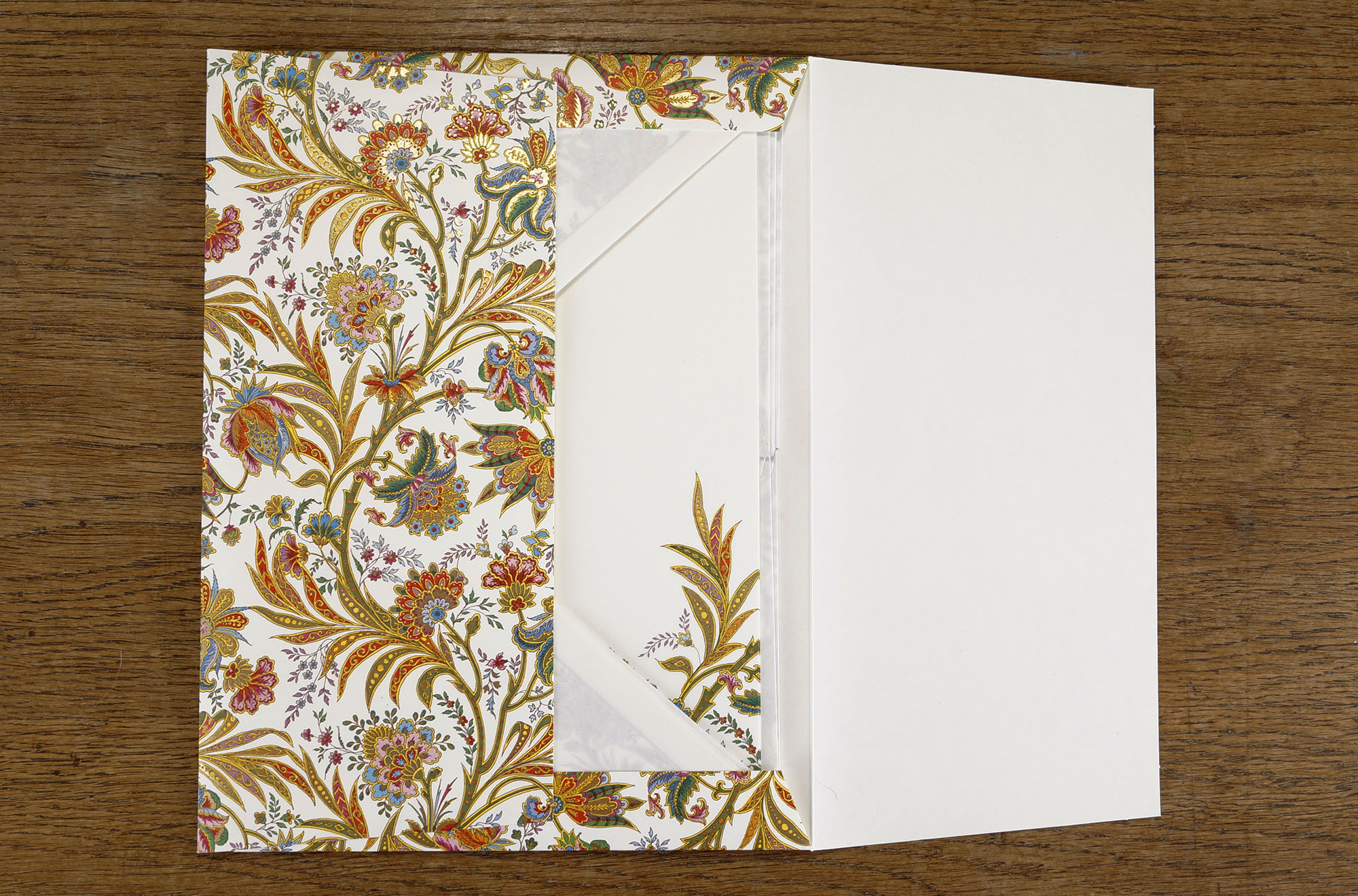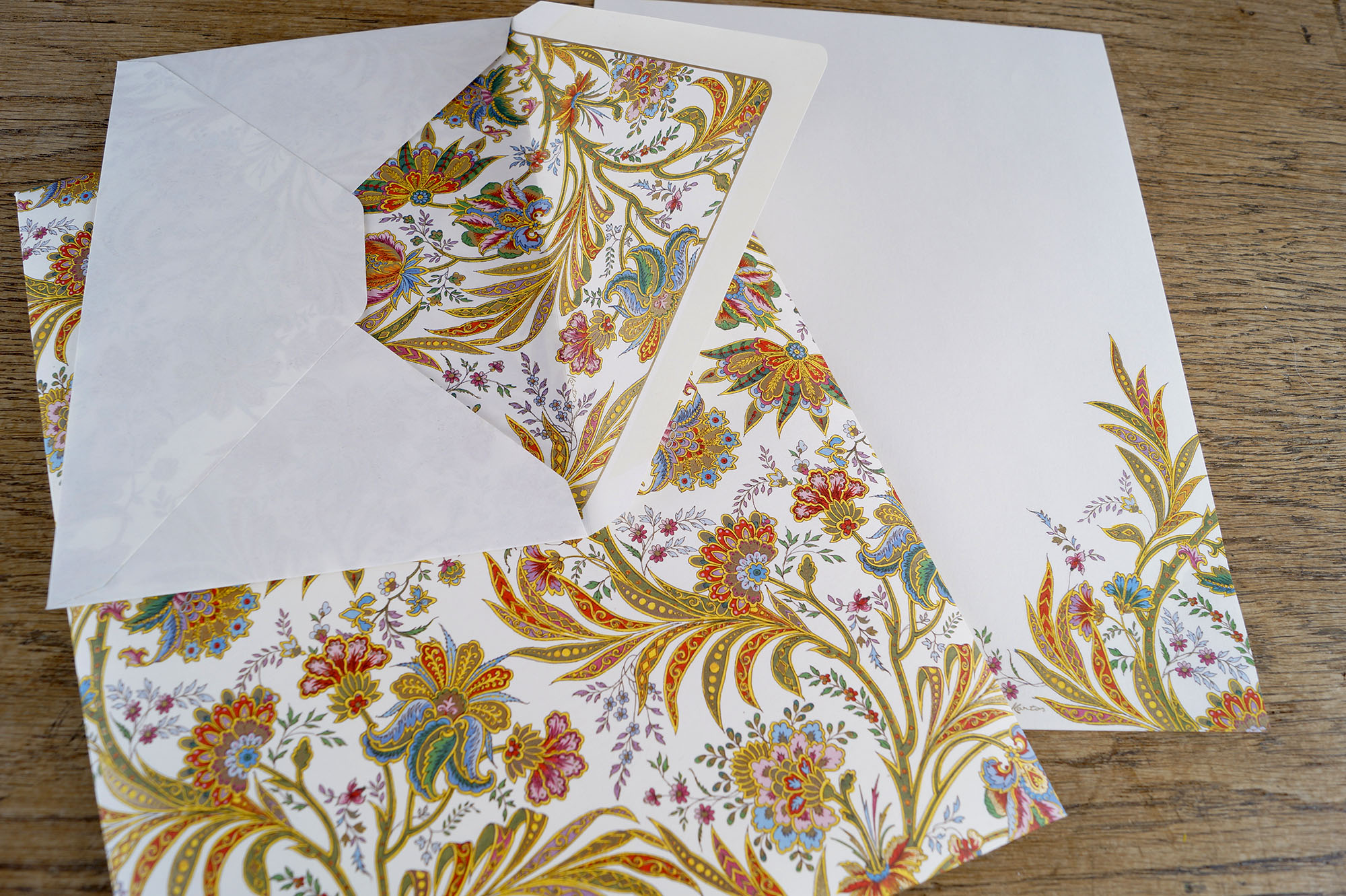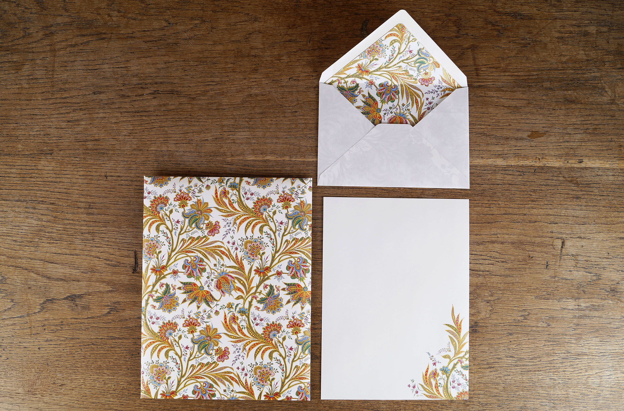 10 Bogen feinstes Briefpapier in der Größe 24 x 18 cm, 10 Kuverts und eine Aufbewahrungsmappe beinhaltet dieses exklusiv bedruckte und mit feinen Goldlinien veredelte Set - ein Muß für schreibfreudige Menschen, die Wert auf Qualität und Stil legen.
