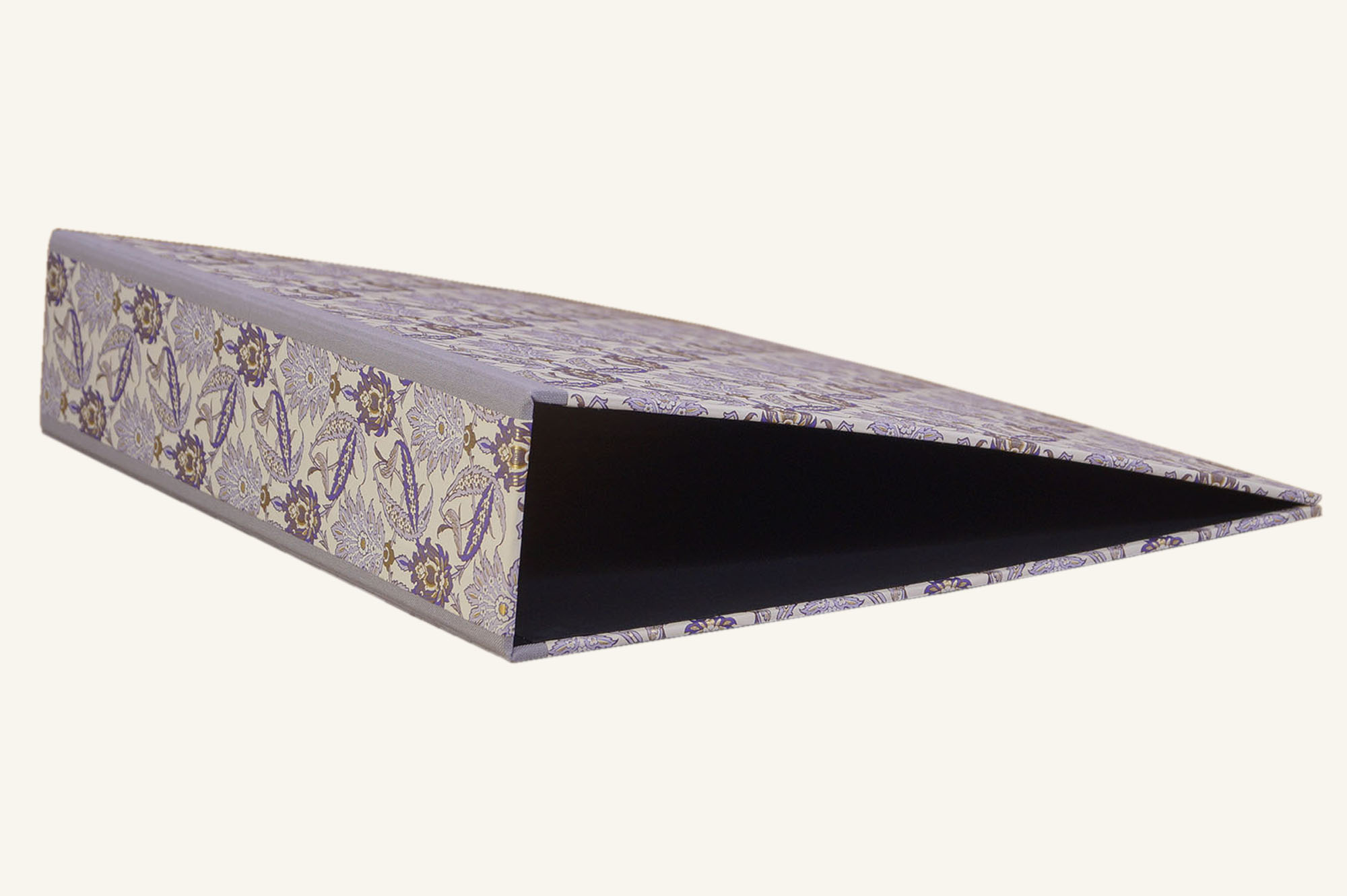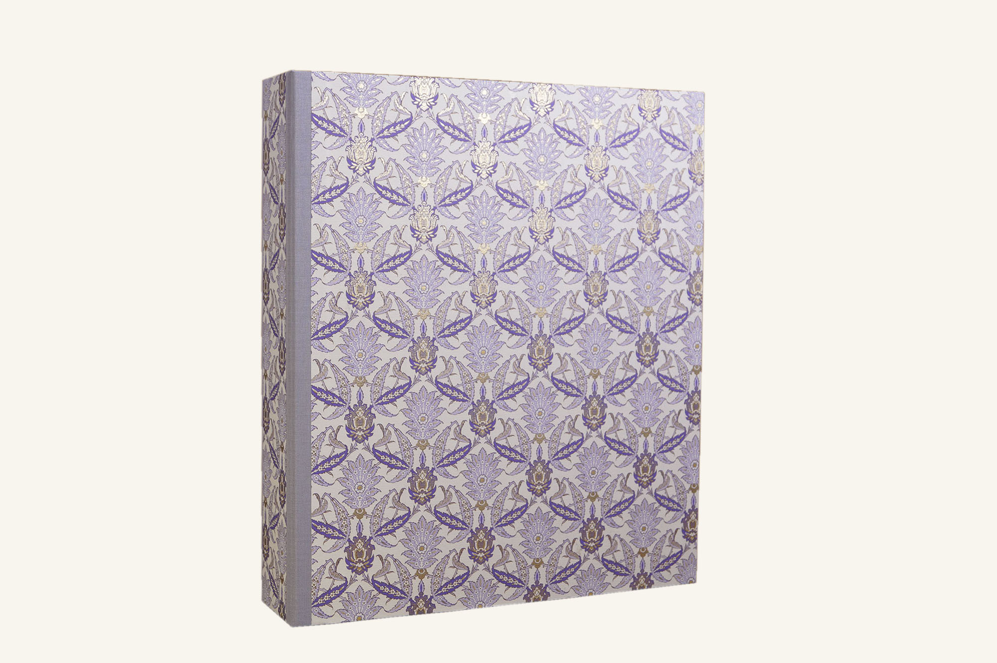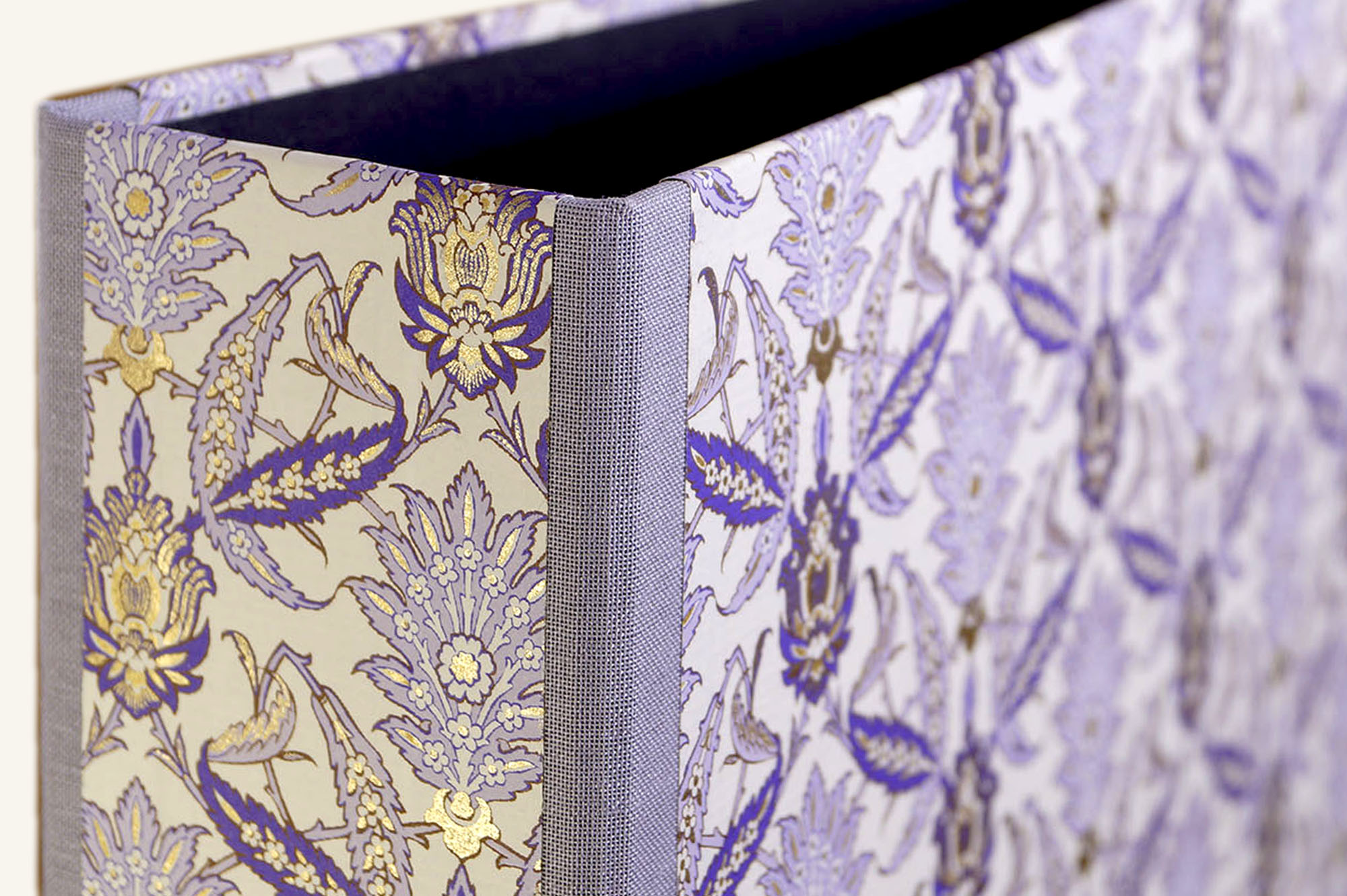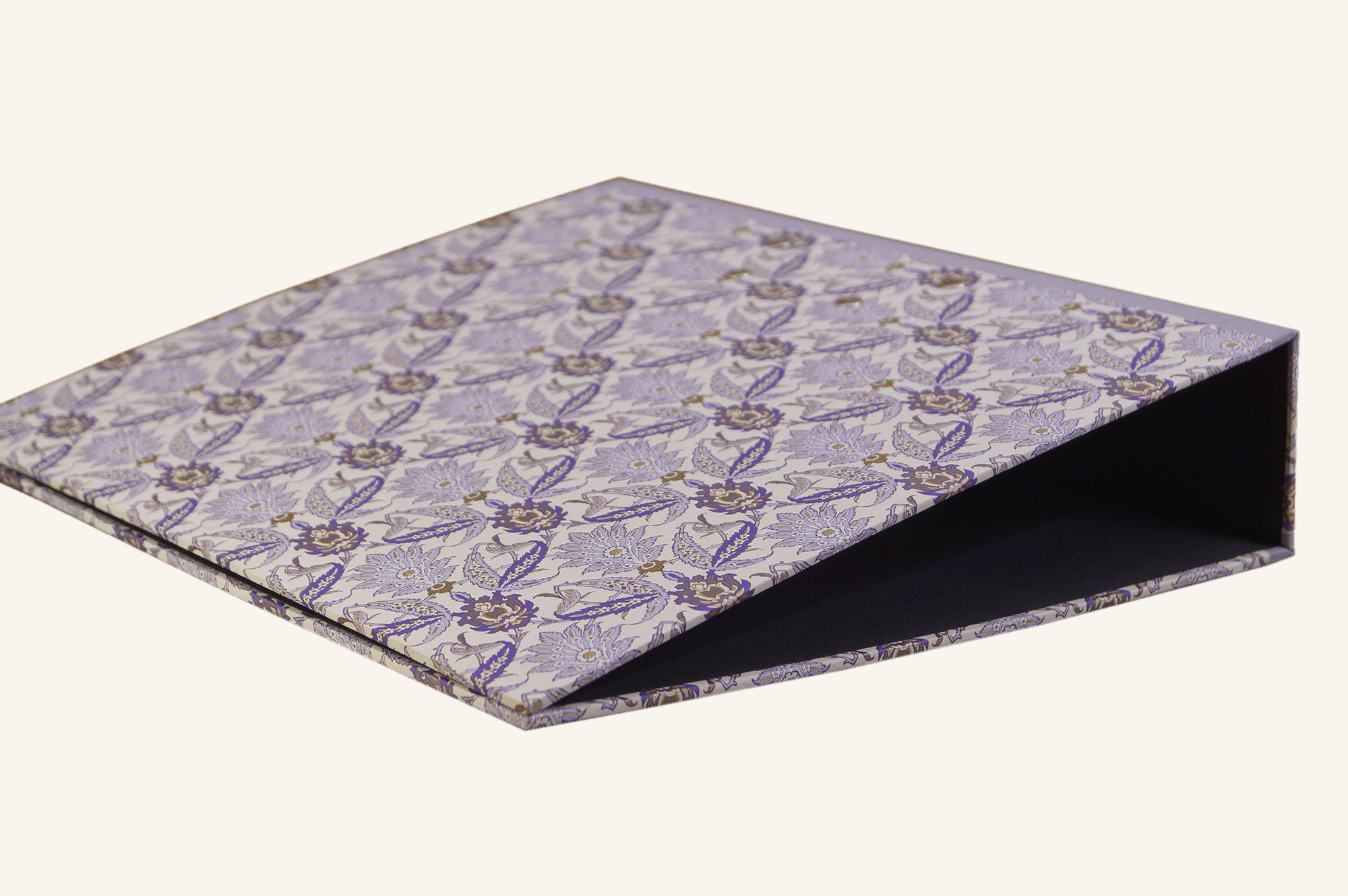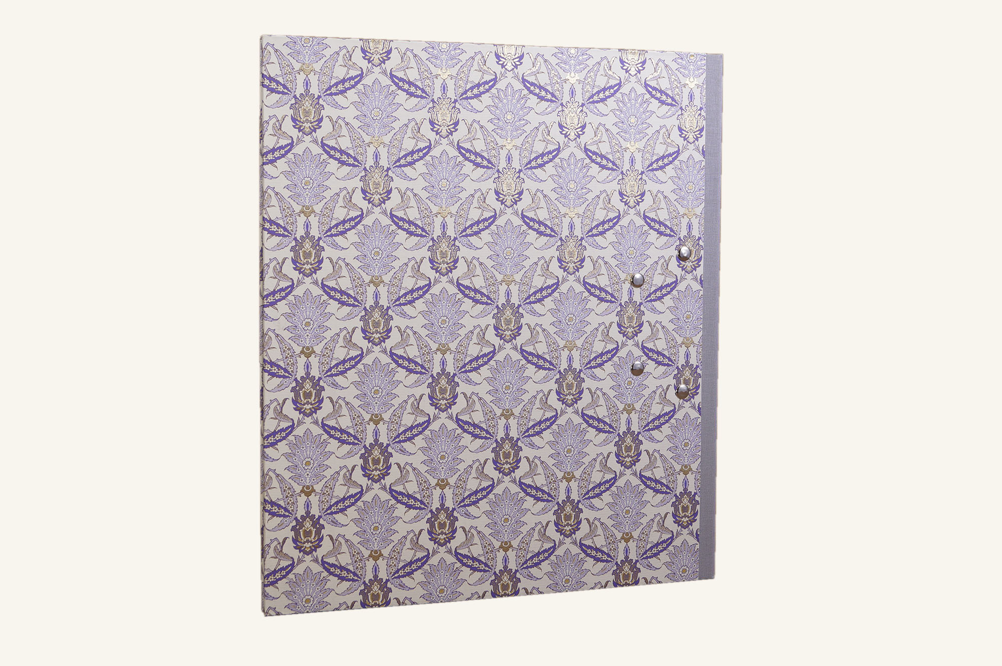 Ordner im Schreibweise - Design, fliederfarbenes italenisches Buntpapier mit dezenten Vergoldungen bildet den Einband für dieses Schmuckstück, dessen praktischer Aspekt durchaus im Vordergrund steht: beste Materialien in bester Verarbeitung.