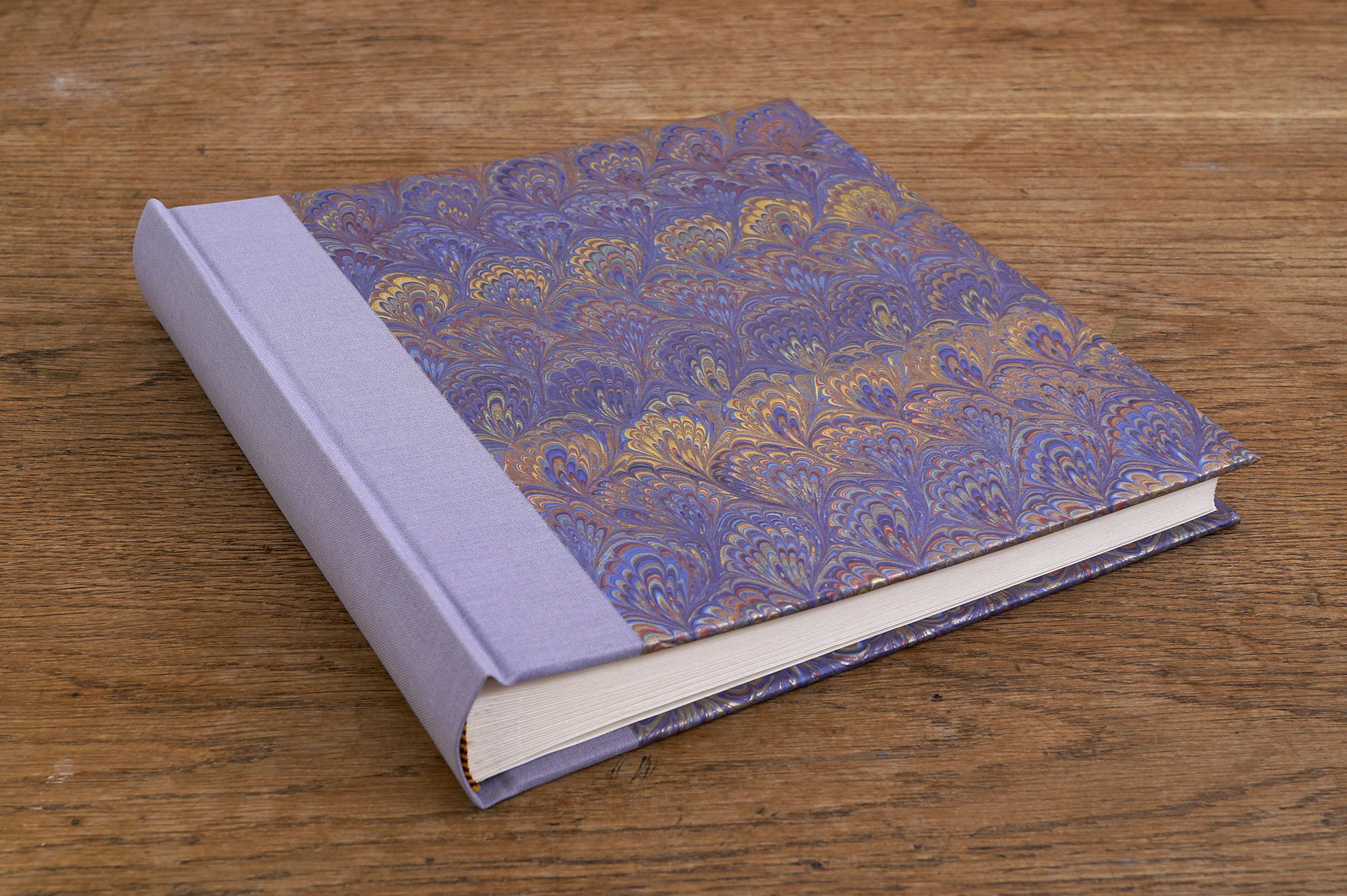 Elegantes handgearbeitetes Fotoalbum, kompakt in den Maßen, mit schönem und stabilen Papier im Florentinerdesign mit Marmordekor bezogen.