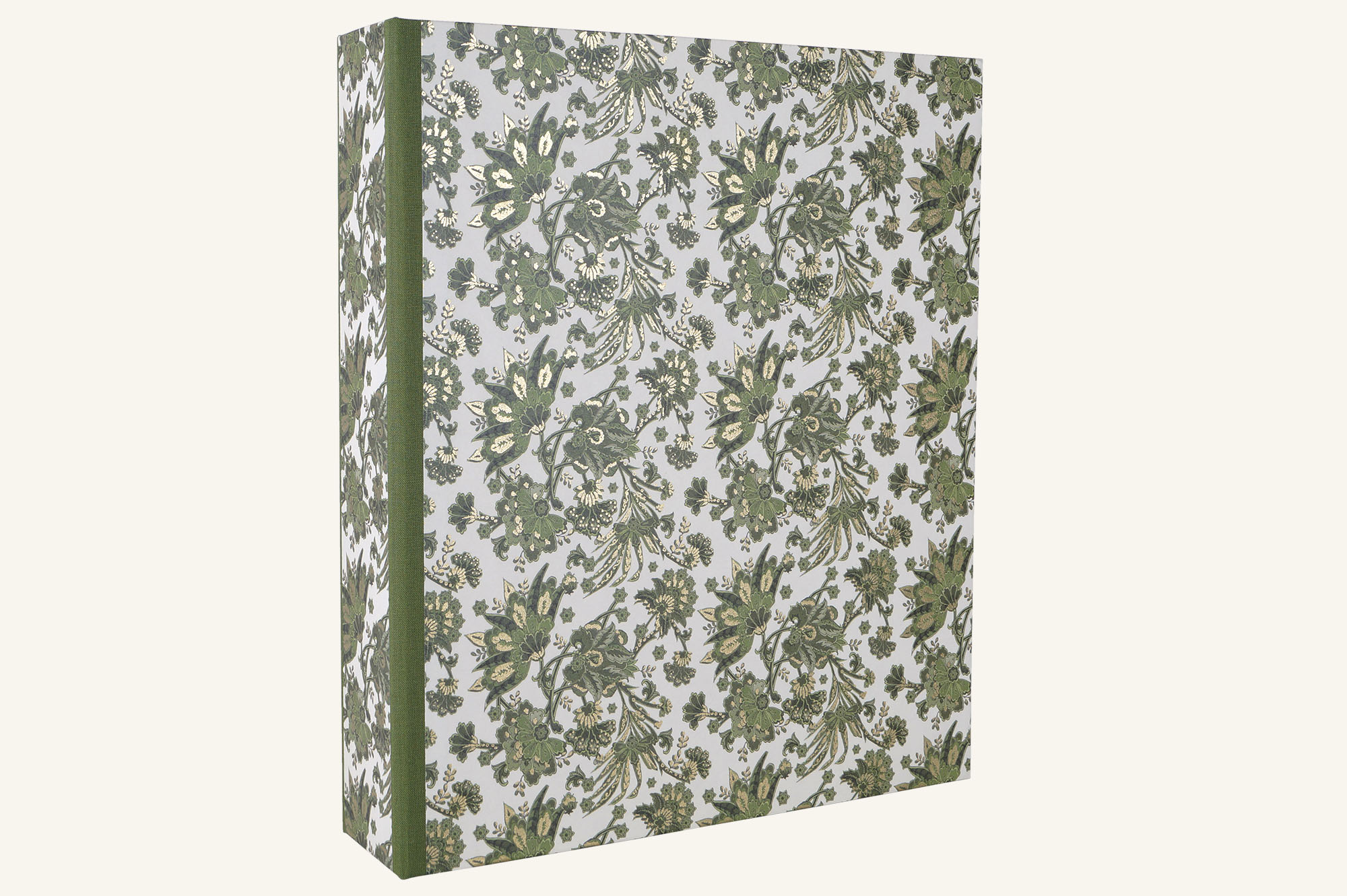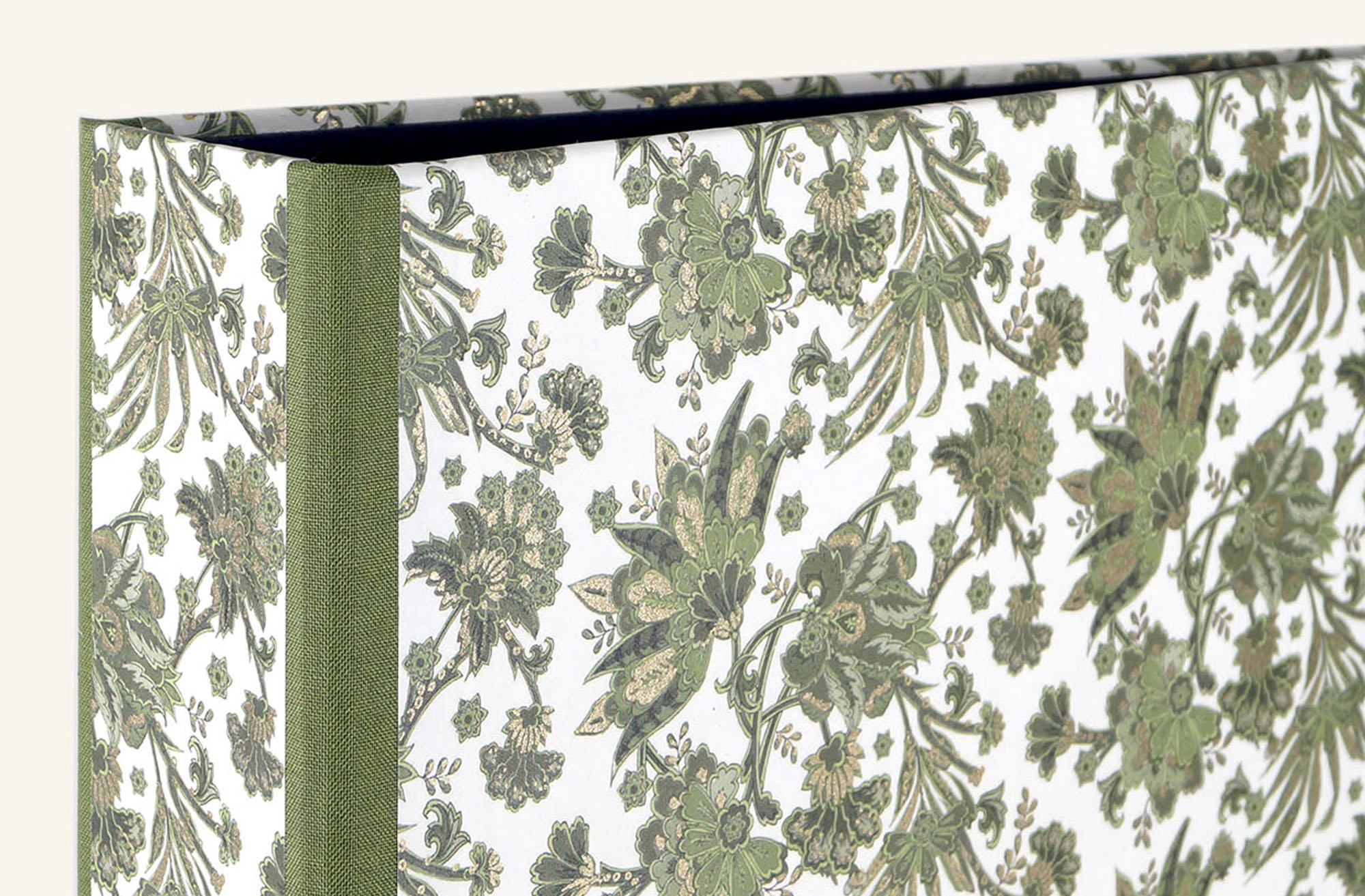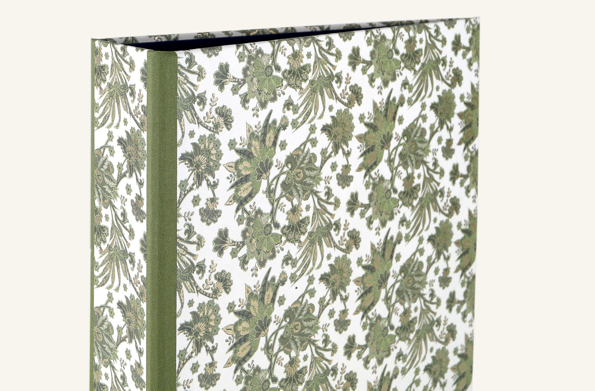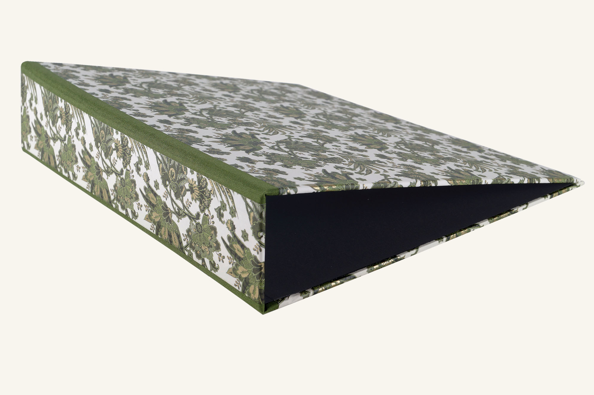 Natürlich handgefertigt ist diese bezaubernde Schreibweise - Aktenordner, extra stabil aus starker Buchbindepappe mit einem Einband aus italienischem Buntpapier mit partiellen Vergoldungen und Leinenkanten zur Verstärkung in ansprechenden Grüntönen. Edles Design trifft hier auf sorgsame handwerkliche Fertigung.