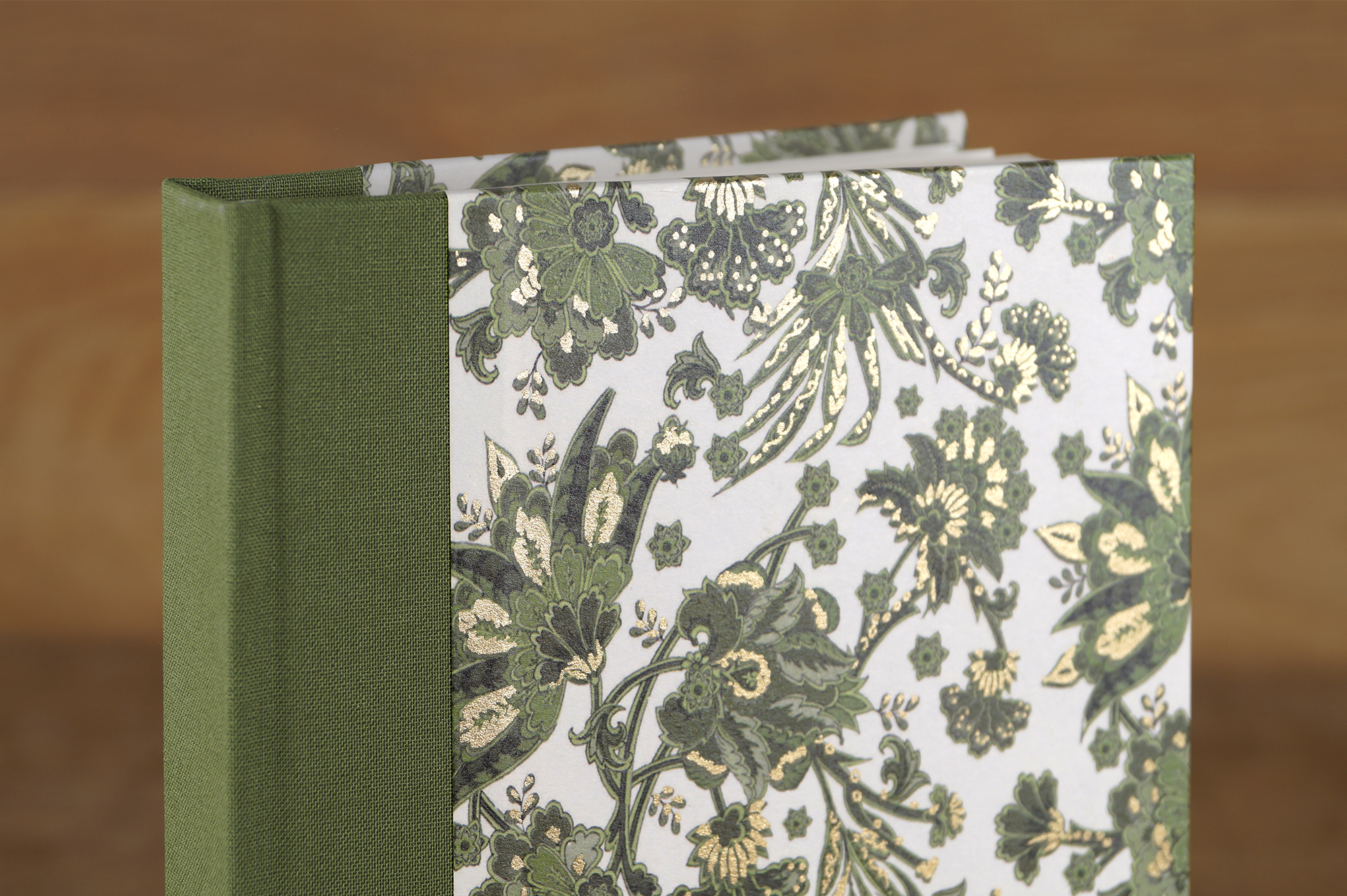 Das Buch hat einen Hardcover-Einband aus stabiler Buchbinderpappe, der mit echtem, goldbestäubtem Papier überzogen ist.