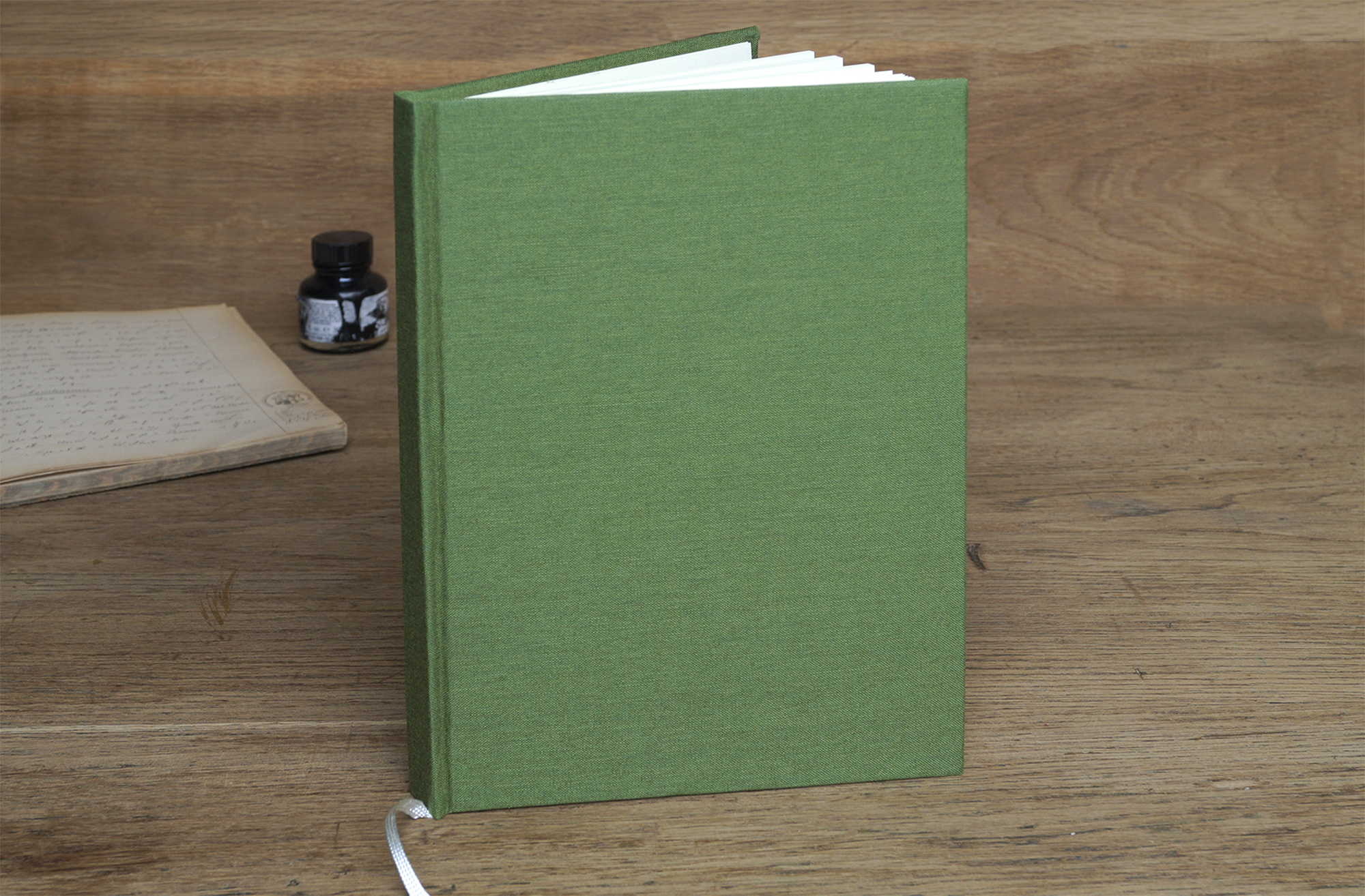 Der Einband besteht aus einem feingewebten Leinen in einem gedeckten, natürlichen Grün - ein haptisches Erlebnis. Ein langlebiges Produkt, das Ihnen lange Freude am Schreiben und Zeichnen bereiten wird. Dazu trägt im besonderen Umfang natürlich das mit jeder Schreibgeräteart zu beschriftende cremefarbene Papier mit Fadenheftung bei.