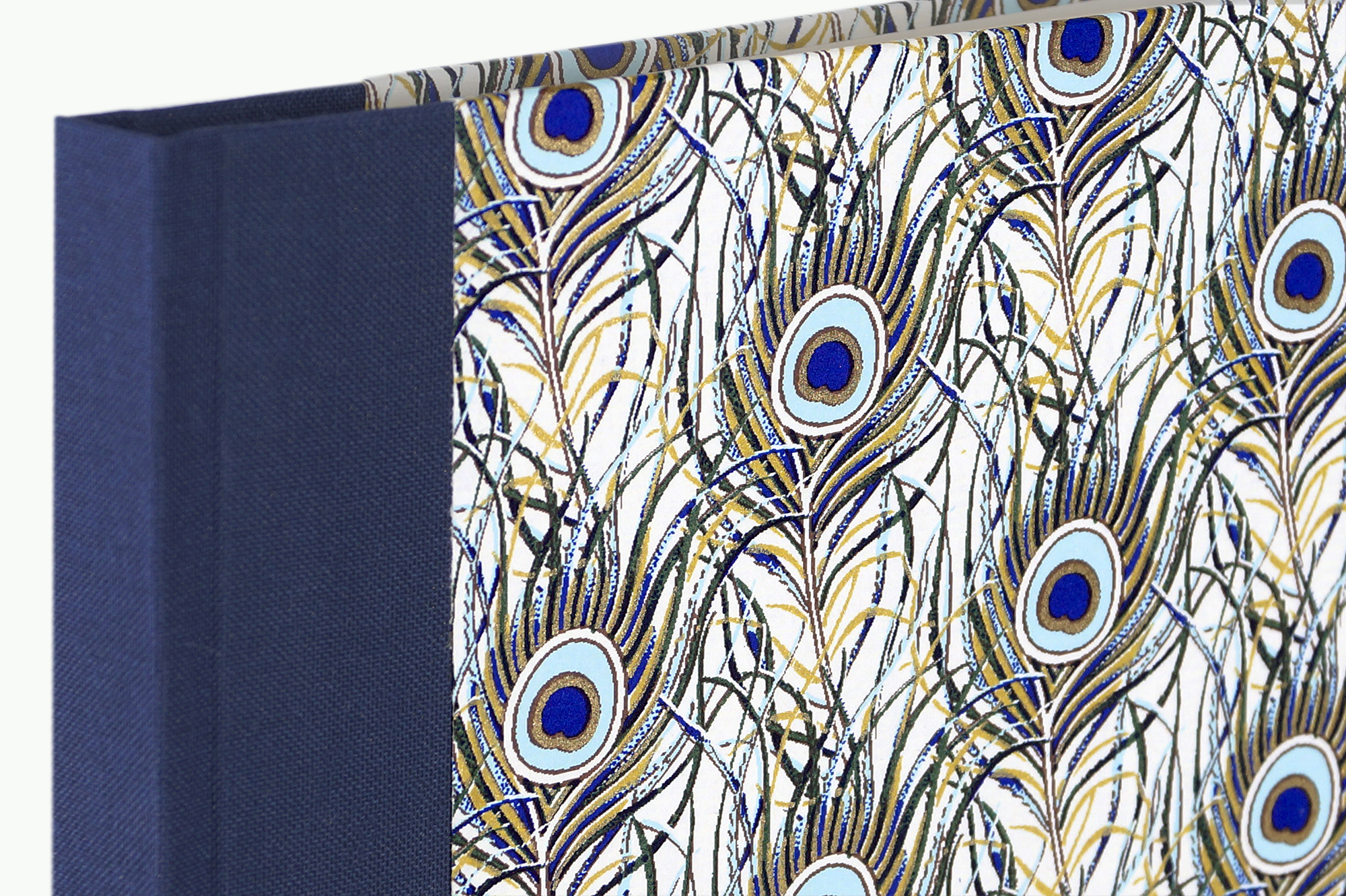 Die Anmutung und Eleganz von Pfauenfedern kommt bei diesem Papier perfekt zur Geltung.