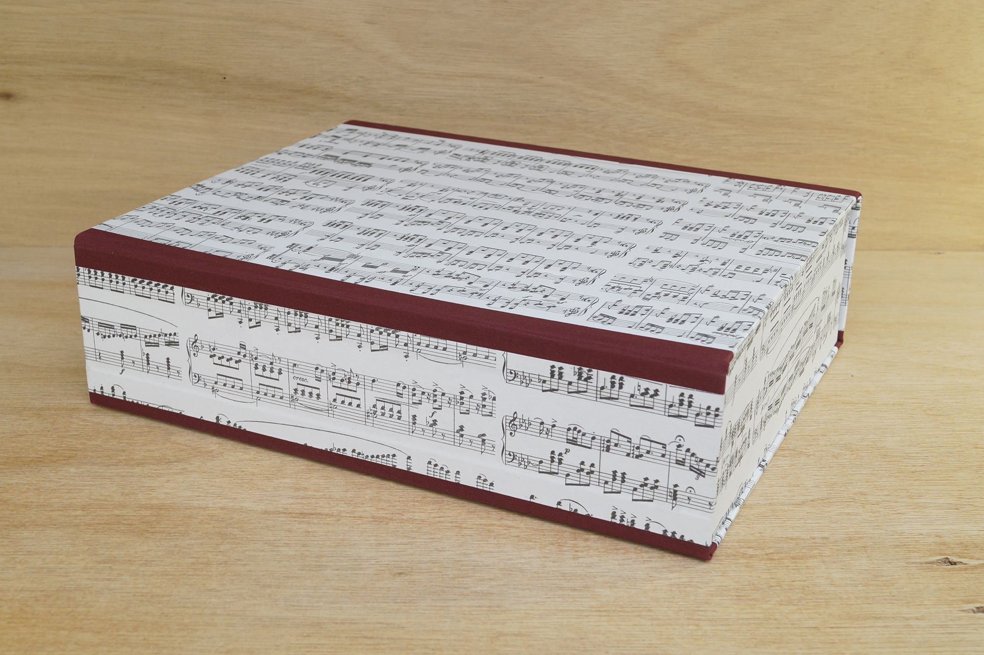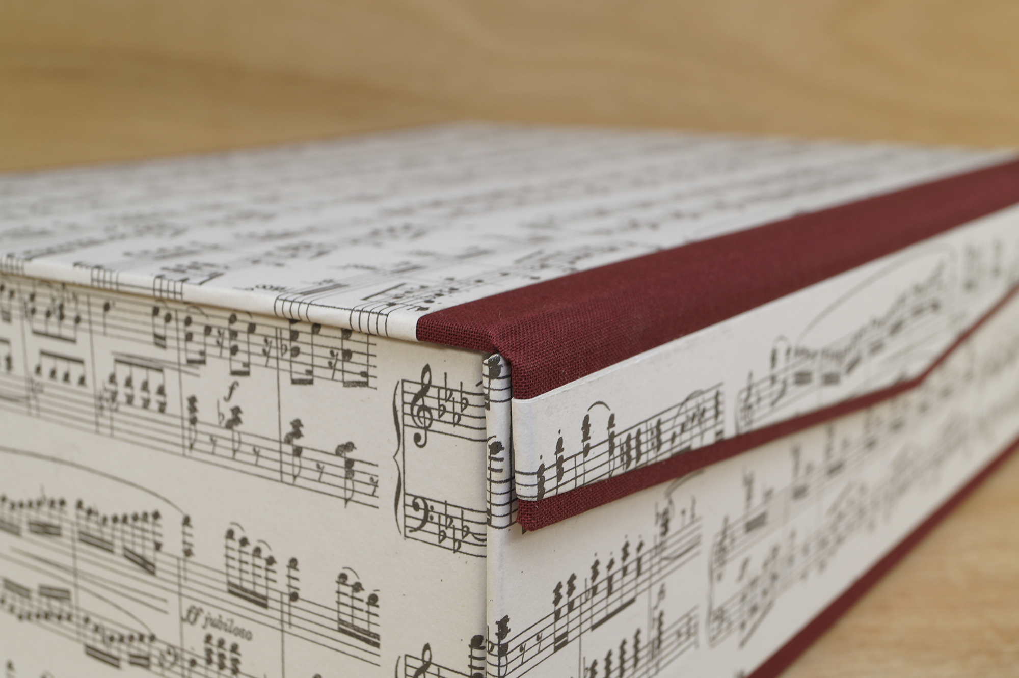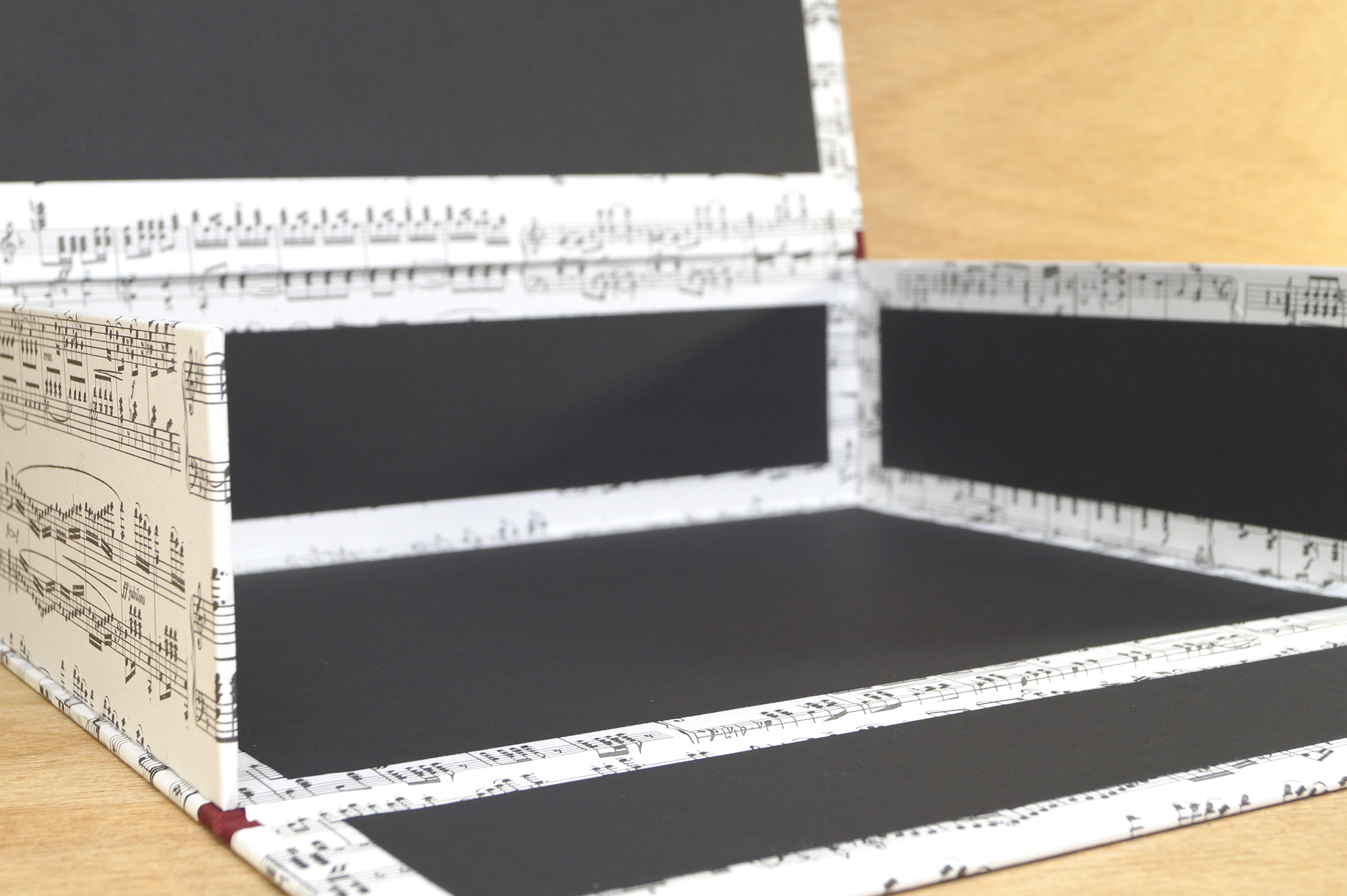The lid of the music box closes with the help of a magnet and protects the music books from dust.