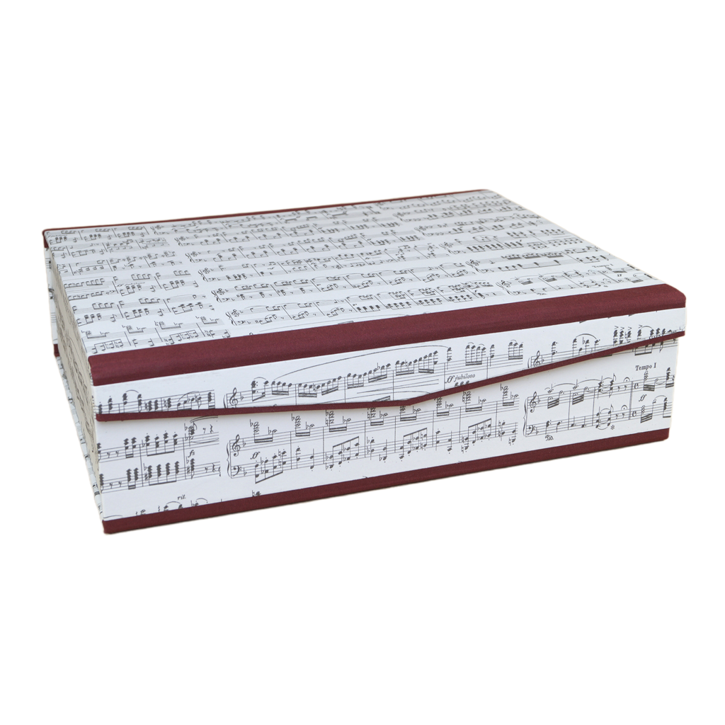 Our high-quality note box made of extra sturdy cardboard is covered with classic note motif paper.
