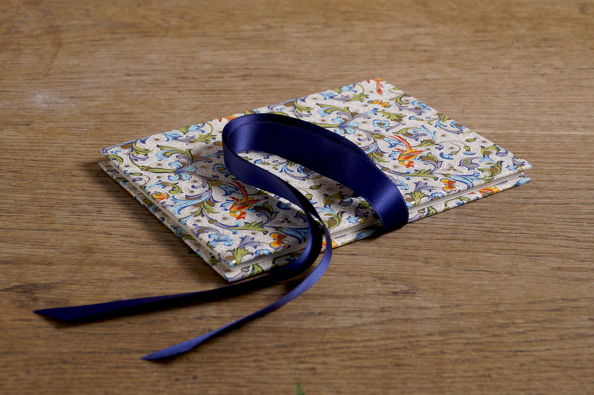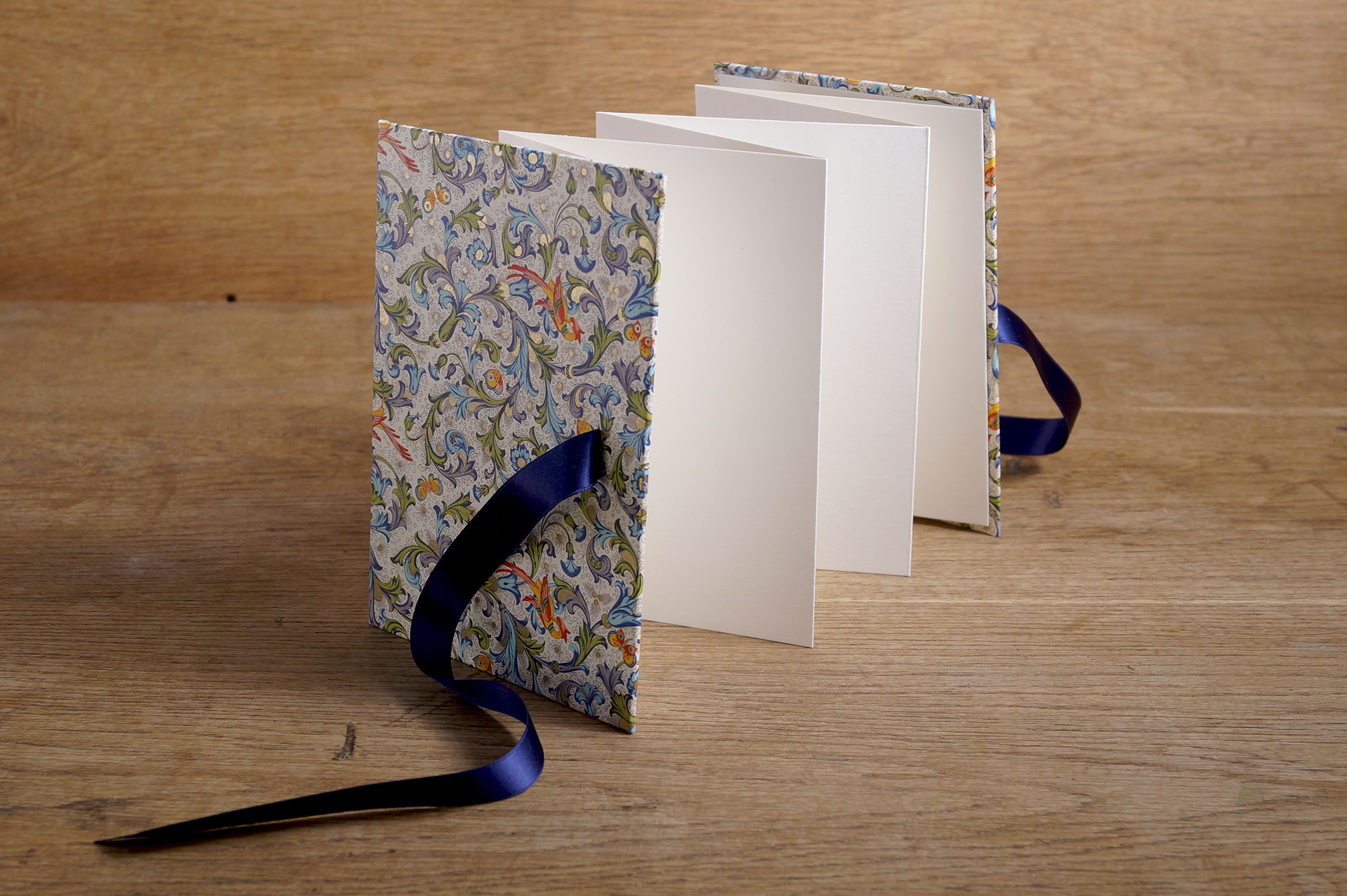 Paper refined with golden bronze adorns the outside of this leporello.